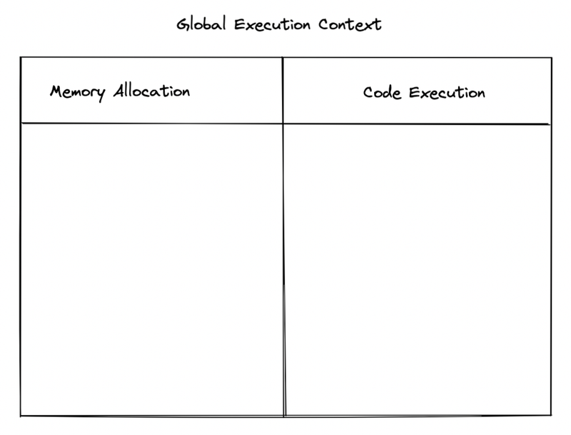 Whenever we run a piece of JavaScript code, a global execution context is created. An important point to remember is that everything inside JavaScript happens inside execution content. You can think of execution context as a container that encapsulates the JavaScript environment. Back to the global execution context, a global execution context comprises two main phases i.e., memory allocation phase and code execution phase.
